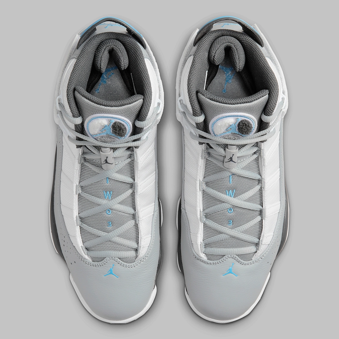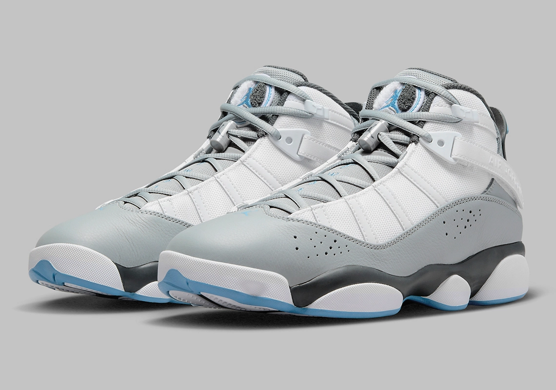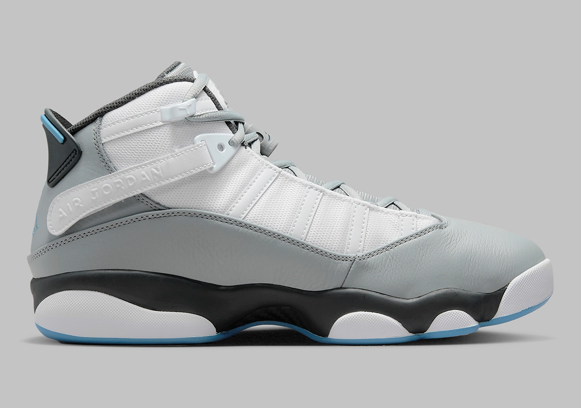 Inspirée des modèles qui ont accompagné les six titres de champion NBA de Michael Jordan, la « 6 Rings » est donc habillée de « Cool Grey », ce gris qui a fait le succès de la dernière Air Jordan 11 sortie en décembre, qu’on retrouve ici sur la base de la tige en cuir, la languette et les lacets.