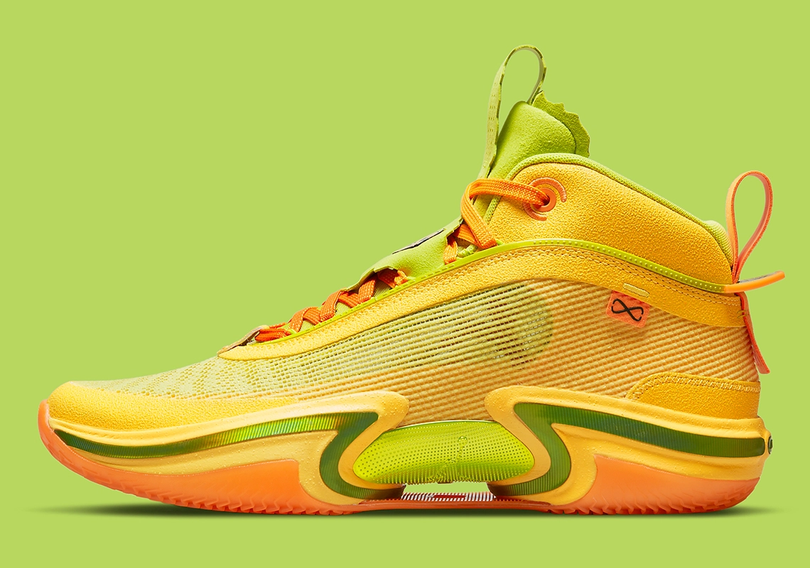 Imaginer un design avec l’esprit « Taco », cette spécialité culinaire mexicaine, tel a été le défi relevé par « Jordan Brand » qui a ainsi mis sur pieds un coloris « Taco Jay », déjà utilisé sur la Air Jordan 34 et de retour ce mois-ci sur la Air Jordan 36, une de plus dédiée à Jayson Tatum, grand amateur de Tacos.