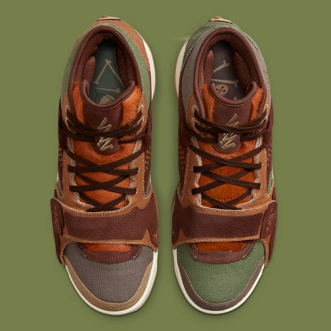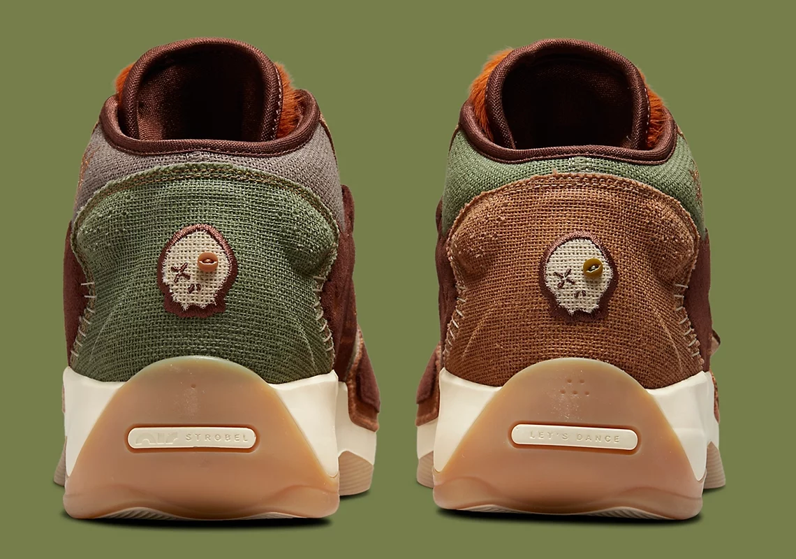 Ce coloris reprend en effet les codes de la traditionnelle poupée vaudou avec une tige composée de toile de chanvre et parties en daim, tandis que la languette se démarque par son aspect « chevelu ». L’ensemble se distingue aussi par ses coutures extérieures, et est agrémenté d’un logo représentant une poupée vaudou au niveau du talon.