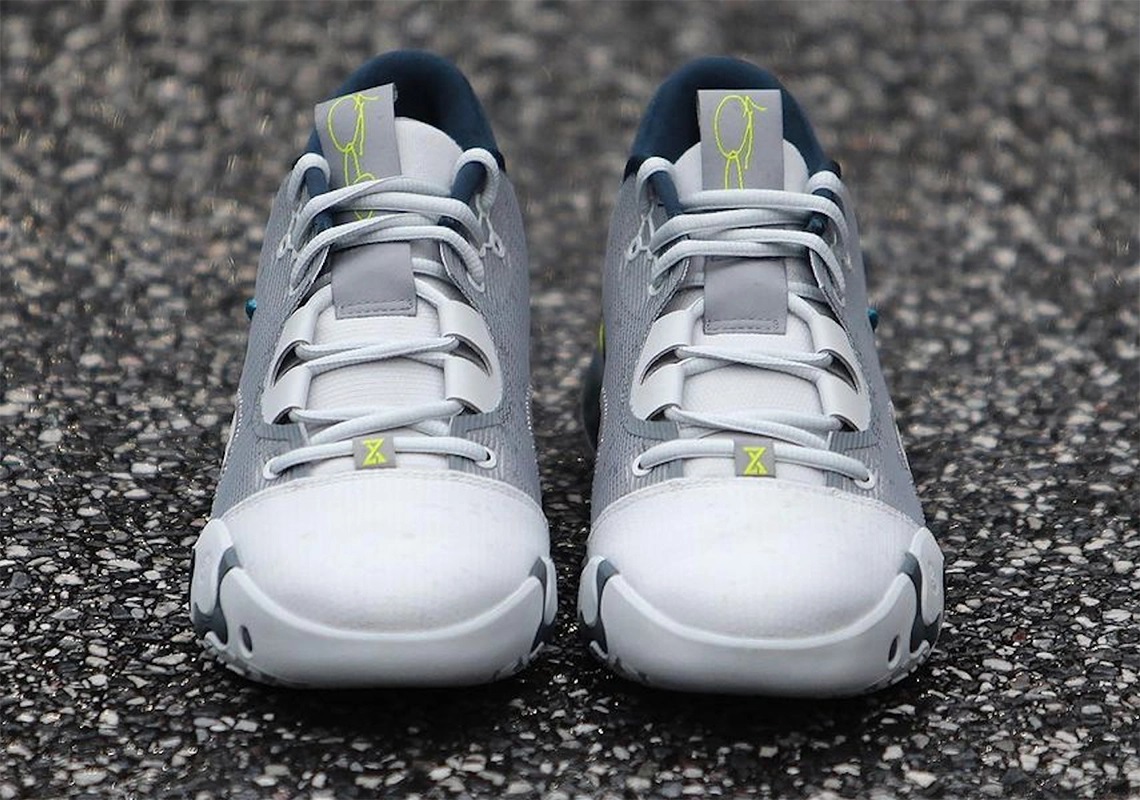 Les deux virgules viennent contraster un peu le tout avec un « Swoosh » d’un bleu plus clair d’un côté et un autre vert clair. Ce coloris ne dispose pas encore de date de sortie officielle.