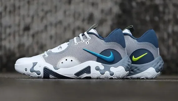 Déjà disponible sur le site officiel de Nike France, la PG 6 continue d'agrandir sa collection avec cette fois un coloris plus sobre, articulé autour du gris-bleu.