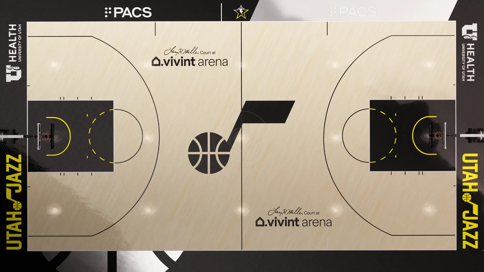 Le parquet de la Vivint Arena va également subir un coup de lifting avec deux nouveaux styles : le « Purple Mountain » aux tons violets et avec le logo rétro de la franchise au centre du terrain, et le « Core », articulé autour des couleurs noir, jaune et blanc, avec cette fois la « note » visible au centre du terrain.