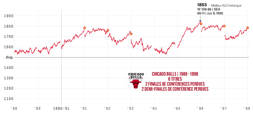 Une équipe moyenne se situe à 1 500. Plus ce seuil est dépassé, plus une équipe est performante. Plus la période s’étend dans le temps, plus une équipe domine son époque. Et aucune des grandes dynasties de l’histoire n’est passée sous le seul des 1 500 durant sa période de règne.