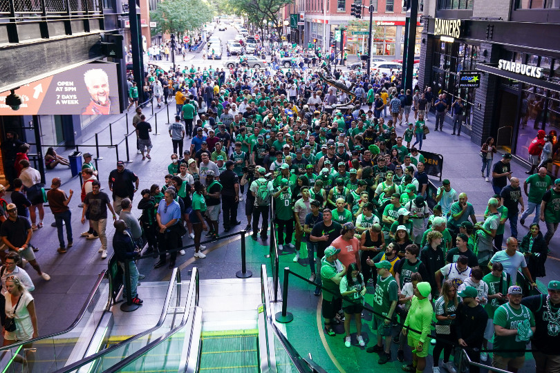 À Boston en revanche, avec un début de match à 21h, les fans prennent la direction du TD Garden assez tôt mais, contrairement au Chase Center et à de nombreuses autres salles NBA, ils ne possèdent pas d’esplanade publique où les gens peuvent se retrouver avant et après le match. Ils s’amassent du coup dans les bars et restaurants de Causeway Street et des alentours pour faire leur “échauffement”.