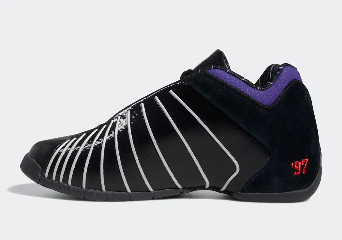 La partie avant de la tige noire s'affiche en imitation peau de Raptor et de touches violet sur le col et la semelle sont là pour le contraste. Avec les logos adidas en blanc, on trouve aussi deux « 97 » en rouge, en clin d’œil à l'année 1997 durant laquelle Tracy McGrady a fait ses débuts.