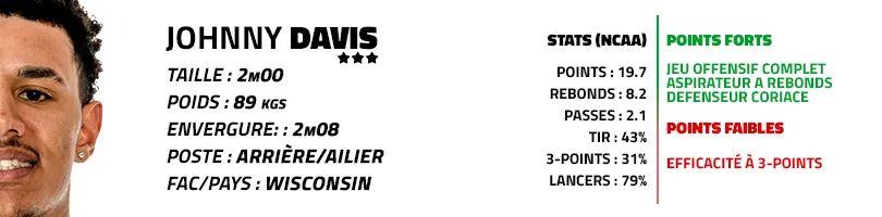 Fort d'un “workout” réussi avec la franchise de la capitale américaine, Johnny Davis est probablement le favori pour ce 10e choix des Wizards. Scoreur sur gros volume avec Wisconsin la saison dernière (19.7 points sur 15.9 tirs), l’arrière changerait naturellement de rôle à Washington, et se muerait en lieutenant de Bradley Beal, Kristaps Porzingis et Kyle Kuzma.