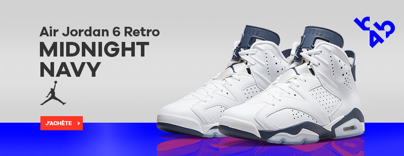 Commande sur basket4ballers.com la chaussure retro Air Jordan 6 “Midnight Navy”, la sixième paire signature de MJ, avec laquelle il a remporté son premier titre NBA.