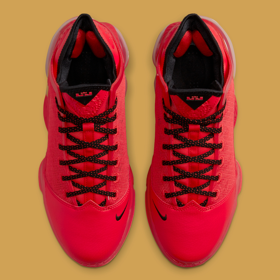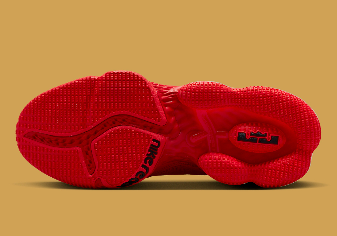 Sur cette version éclatante, le rouge occupe la majeure partie de la paire, que ce soit sur la tige, la semelle extérieure ou la mousse Nike React. Quelques finitions en noir au niveau du col, des lacets ainsi qu’une virgule sur l’avant du pied complètent l’ensemble. Un autre « Swoosh » apparaît en jaune au niveau de la mousse Nike React.