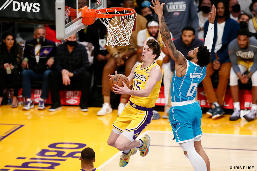 Sous ses airs de freluquet inoffensif, à mi chemin entre Steve Nash et Steve Kerr, Reaves est un diablotin qui peut sortir de sa boîte à n’importe quel instant, comme face à Utah ou Dallas. Dans le naufrage permanent des Lakers, le rookie a été un des seuls à surnager, offrant 7 points, 3 rebonds et 2 passes de moyenne alors qu’il n’était censé être qu’un “two way” pour faire le nombre.