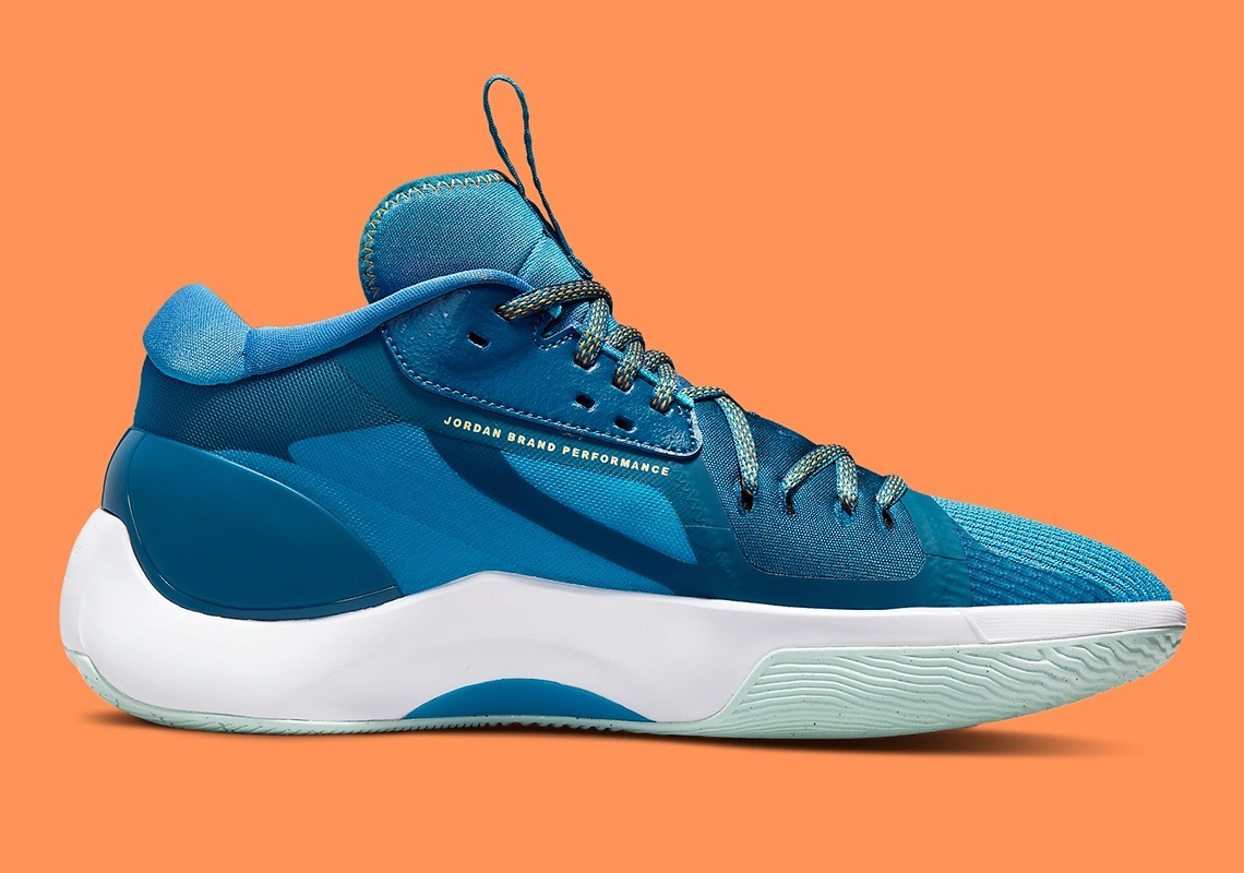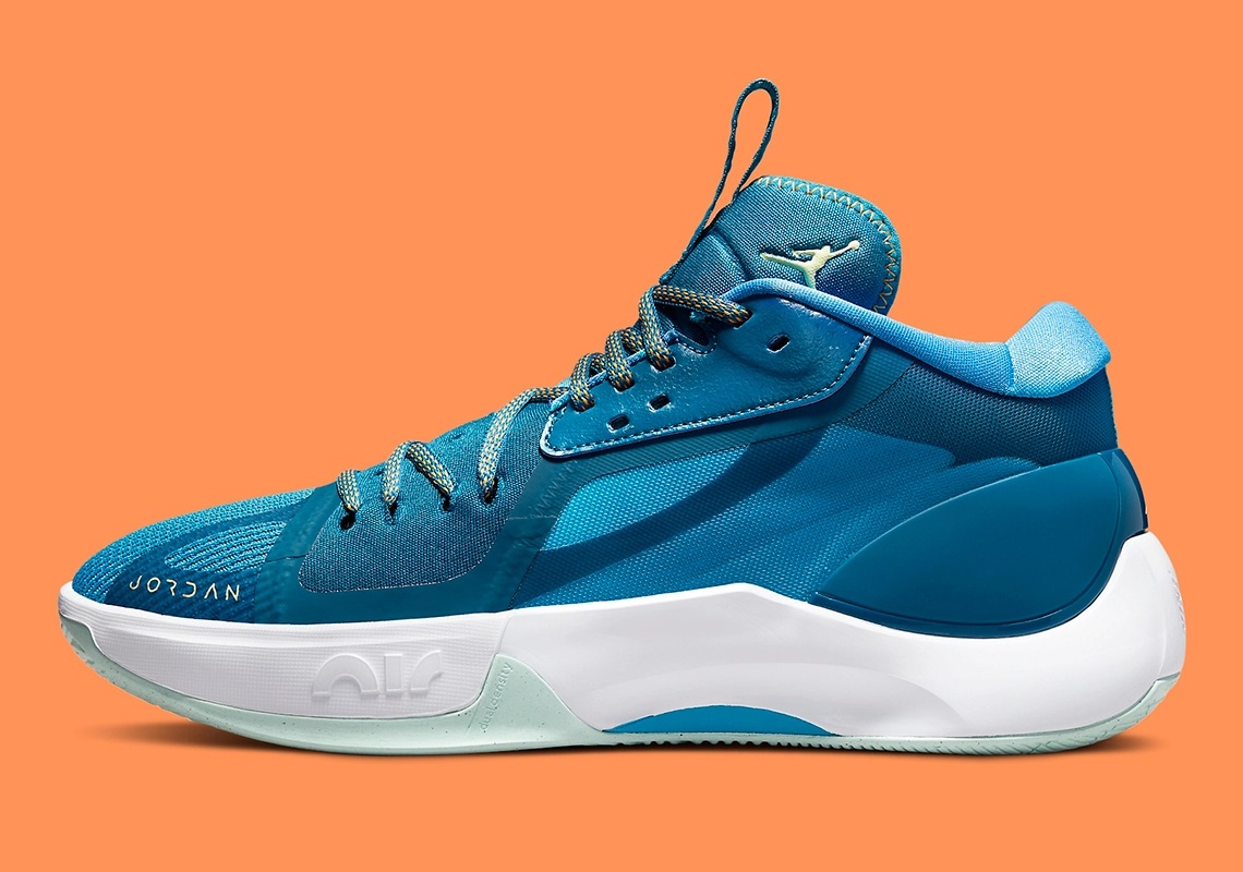 Cette fois, c’est logiquement la « Jordan Zoom Separate », un premier modèle conçu en fonction des caractéristiques techniques du joueur, qui est mise à l’honneur avec ce coloris « laser blue », qui emprunte des couleurs des Mavericks de Dallas.