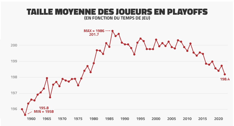La taille moyenne en chute pendant les playoffs