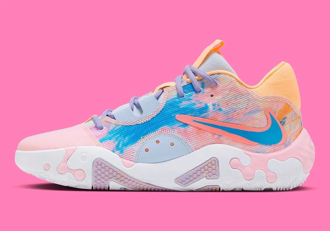 Après avoir dévoilé un dernier coloris plutôt sobre de sa PG 6, Nike a cette fois fêté l'arrivée de l'été en grande pompe avec cette nouvelle version plus pétillante alternant orange, rose et bleu.