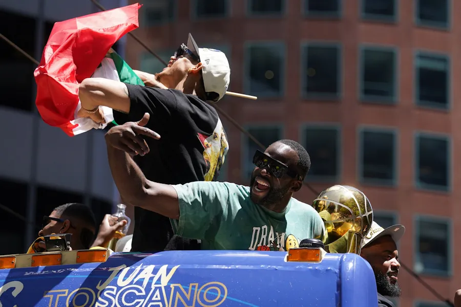 Malgré cet ajustement géographique, Draymond Green considère que c'était probablement la meilleure parade de toutes. Pourquoi ? D'abord parce que « Steph Curry a fait des siennes et on ne voit jamais ça. Klay Thompson a fait des siennes. Cet homme, d'ailleurs, je sais qu'on a tous vu la vidéo ou si vous ne l'avez pas vue, s'il vous plaît allez sur votre Instagram et trouvez la vidéo de Klay Thompson qui trébuche. »