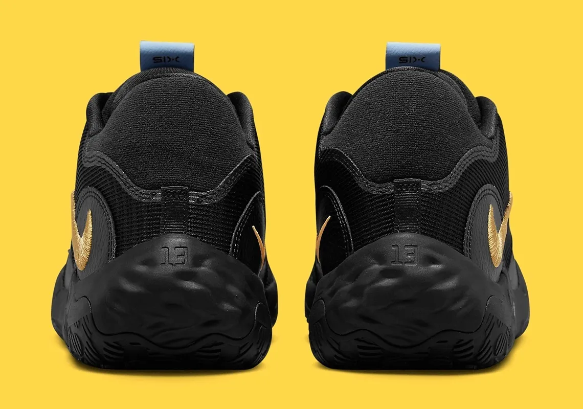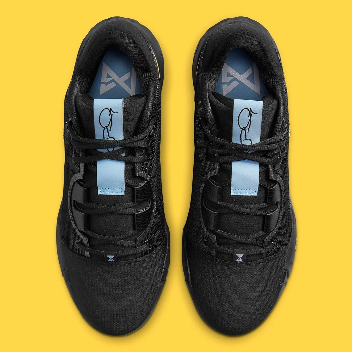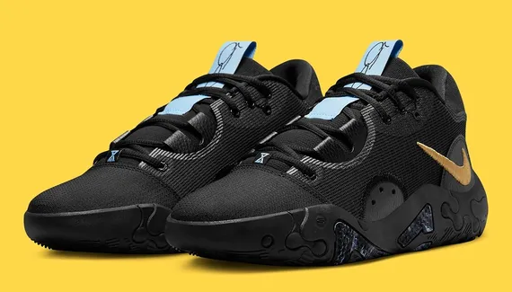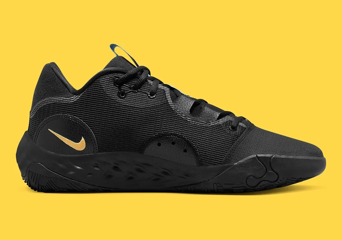 La PG 6 alterne les coloris sobres et les plus « flashy » ces derniers temps. Retour au classique cette fois avec une tige en mesh principalement noire, au même titre que la semelle, seulement relevée par du marbré en noir et bleu sur le logo du joueur.