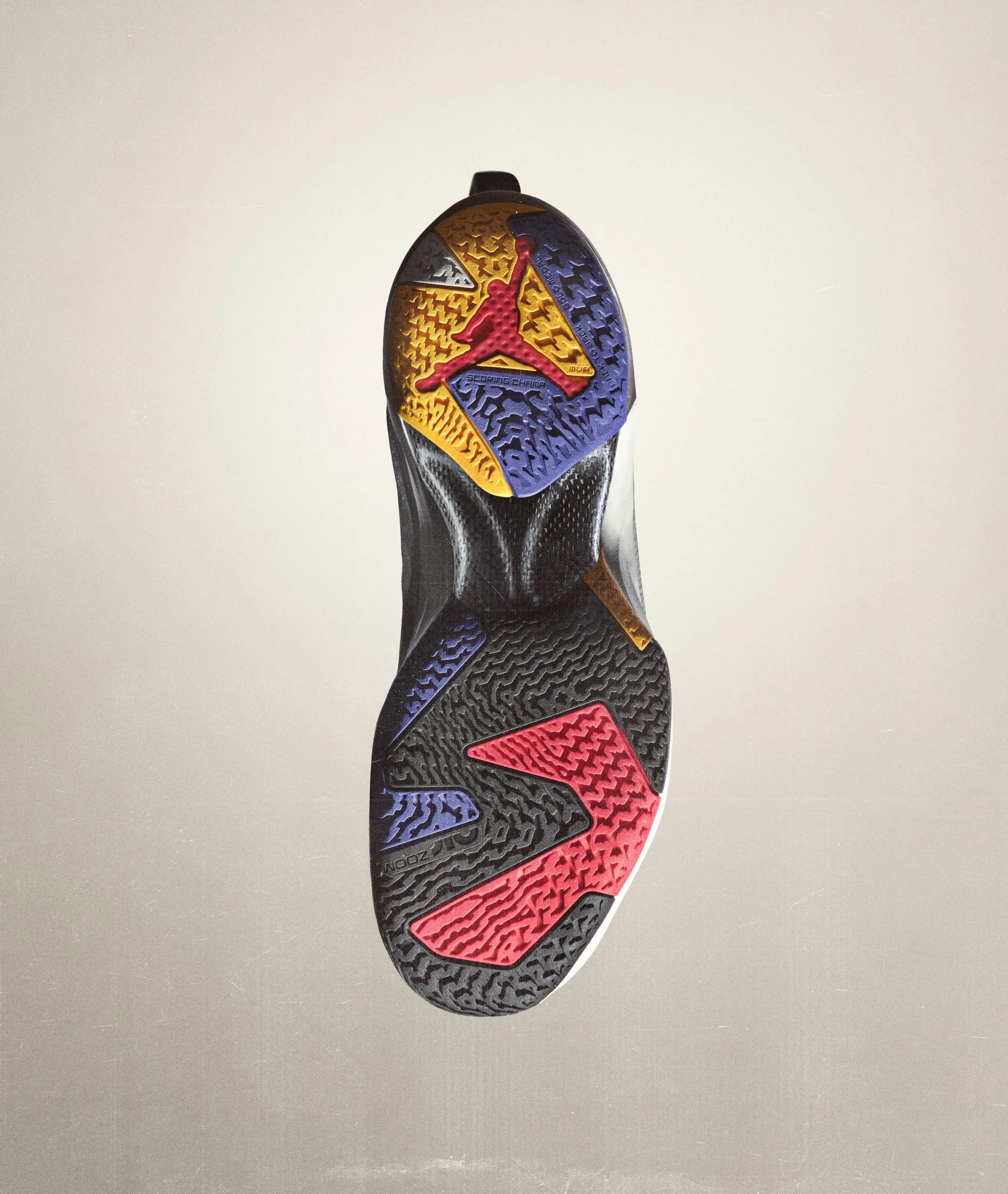 On commence par la semelle qui sera dotée de la fameuse mousse réactive « Formula 23 », enveloppée par un moule TPU au niveau du talon notamment. C'est la toute nouvelle mousse développée par la marque au Jumpman, décrite comme plus réactive à tout type d'appui, plus légère, et qui sera également présente sur la très attendue « Luka 1 ». Une unité Zoom Air Strobel à l'avant du pied complète le dispositif.