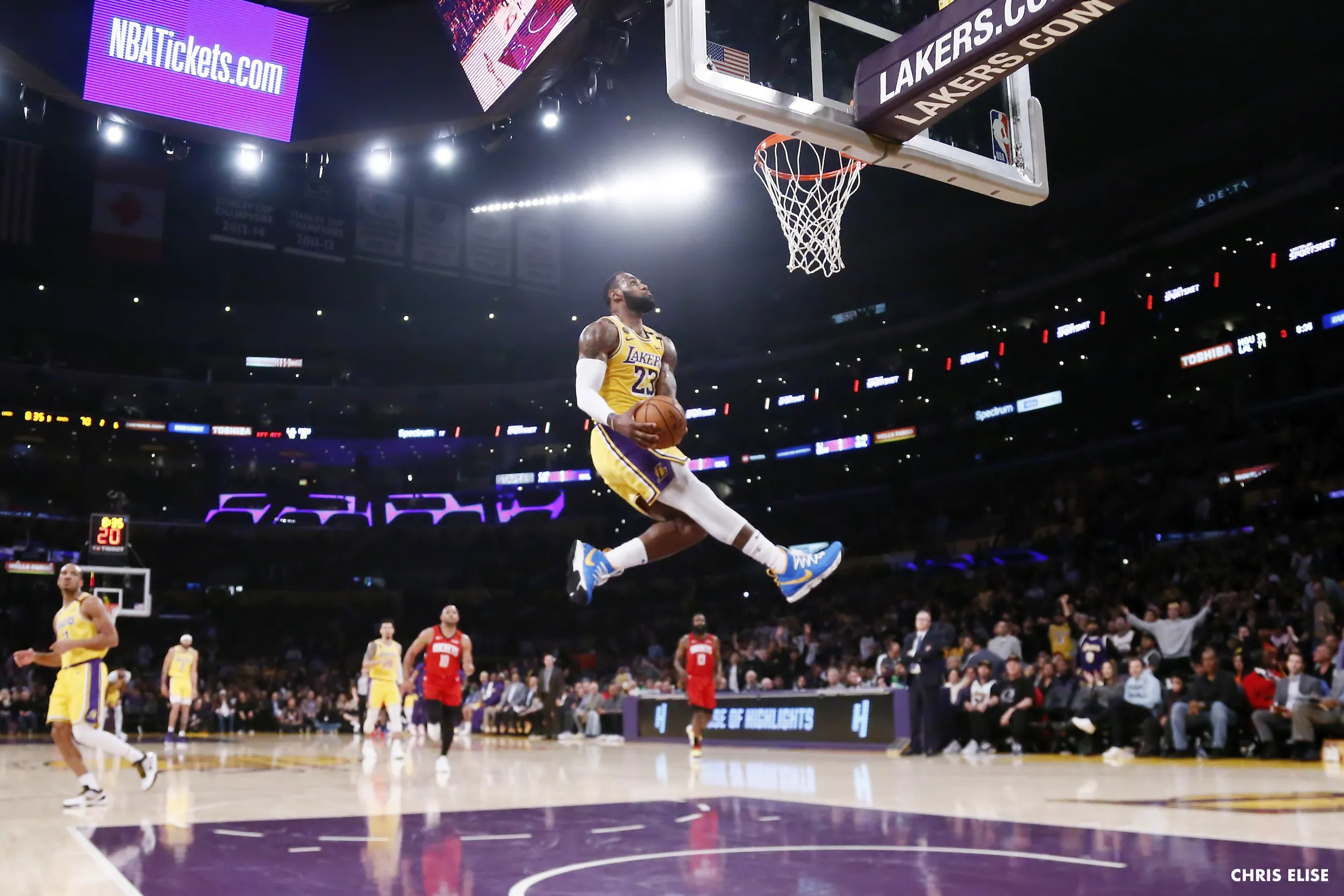 Au premier abord, on penserait à un banal dunk en contre-attaque. « Banal » à l'échelle de LeBron James, on s'entend : tout le monde n'est pas capable d'envoyer un moulin à vent renversé avec autant de facilité. Même notre photographe Chris Elise, au bord du parquet du Staples Center ce 6 février 2020 pour la réception des Rockets, n'est pas le plus impressionné : « Ce n'était pas un moment sensationnel car il est tout seul en contre-attaque et fait un petit ‘reverse dunk' »