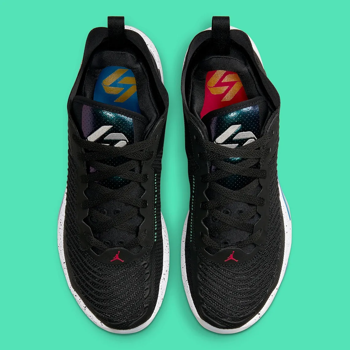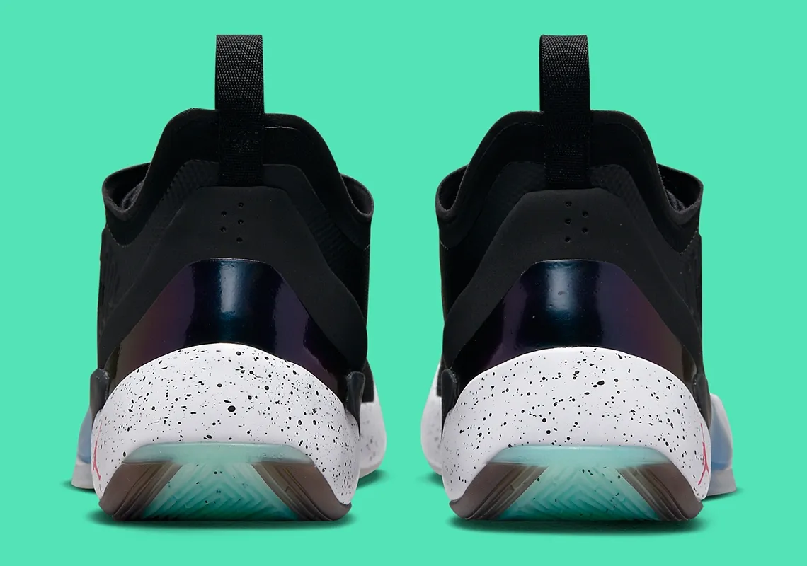 La tige en mesh noir est complétée de touches de bleu et de finitions en rouge tandis que la semelle intermédiaire apparaît en blanc tacheté. Au niveau de sa composition, la Luka 1 est assortie de la technologie « IsoPlate »,dérivé de la « Flight Plate » de la Air Jordan 28, et de l’ « Eclipse Plate » de la Air Jordan 34, ainsi qu’une mousse baptisée « Formula 23 », annoncée comme l’une des plus durables fabriquées par la marque à la virgule. Enfin, la tige est recouverte de câbles Flywire.