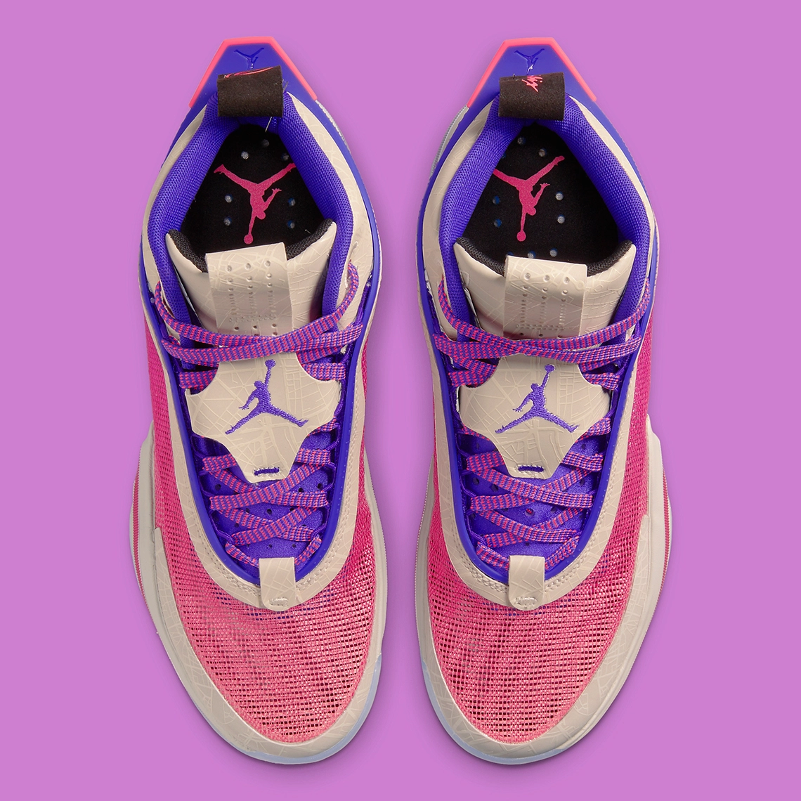 Au-delà du magnifique dégradé « coucher de soleil » allant du rose au violet pour recouvrir la tige en tissage Leno et habiller le ruban traversant la semelle intermédiaire, on note sur les parties en beige la présence de motifs représentant en fait une partie de la carte de la ville de Paris. A noter d’autres clins d’œil comme le « Paname » sous la cheville ou le 75 sur la tirette de la chaussure droite.
