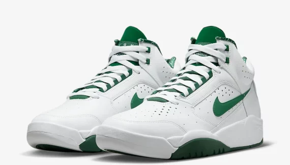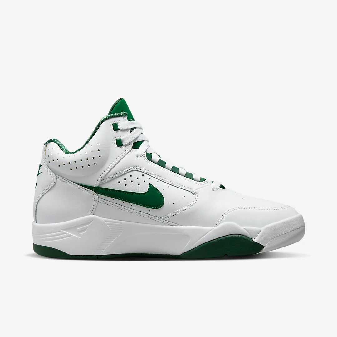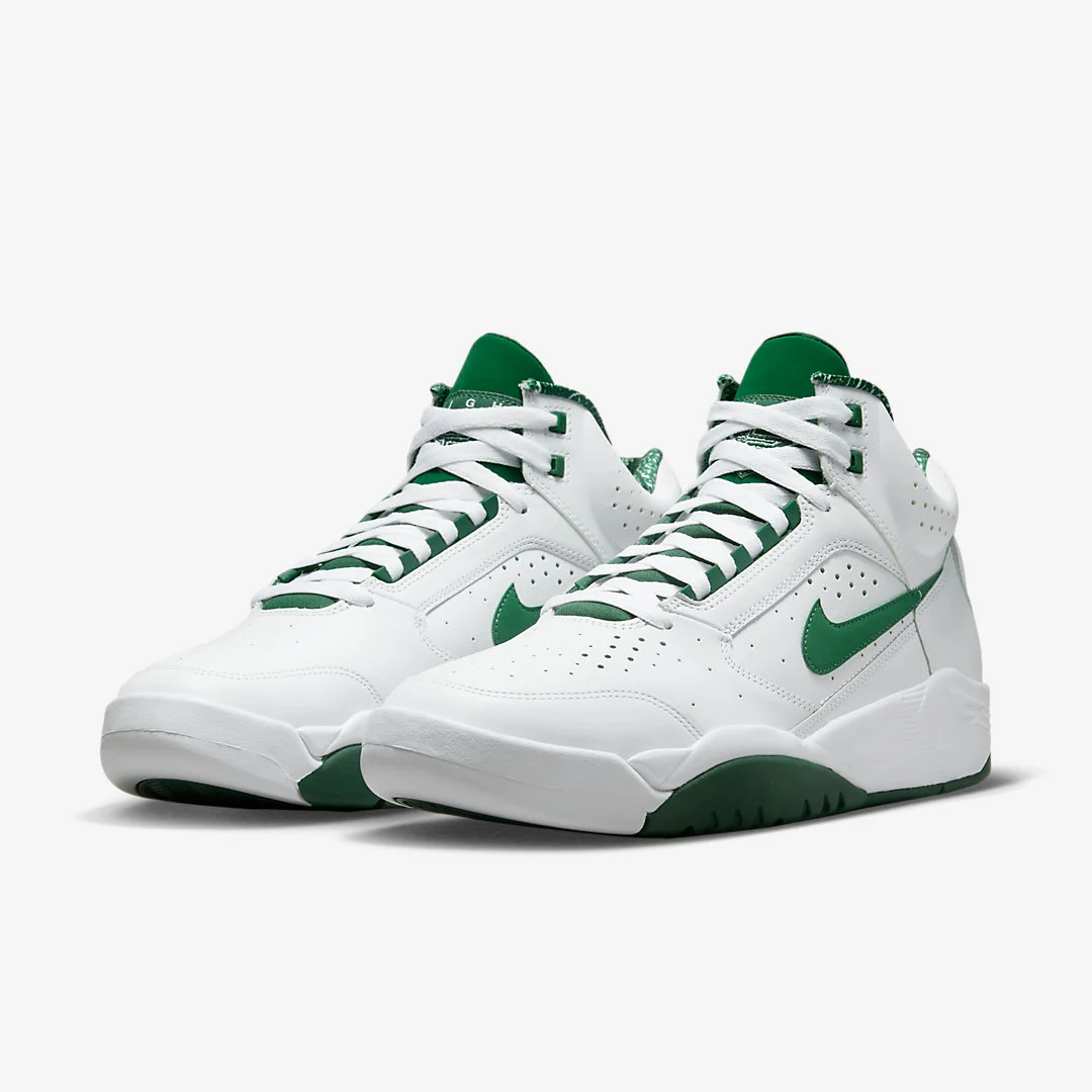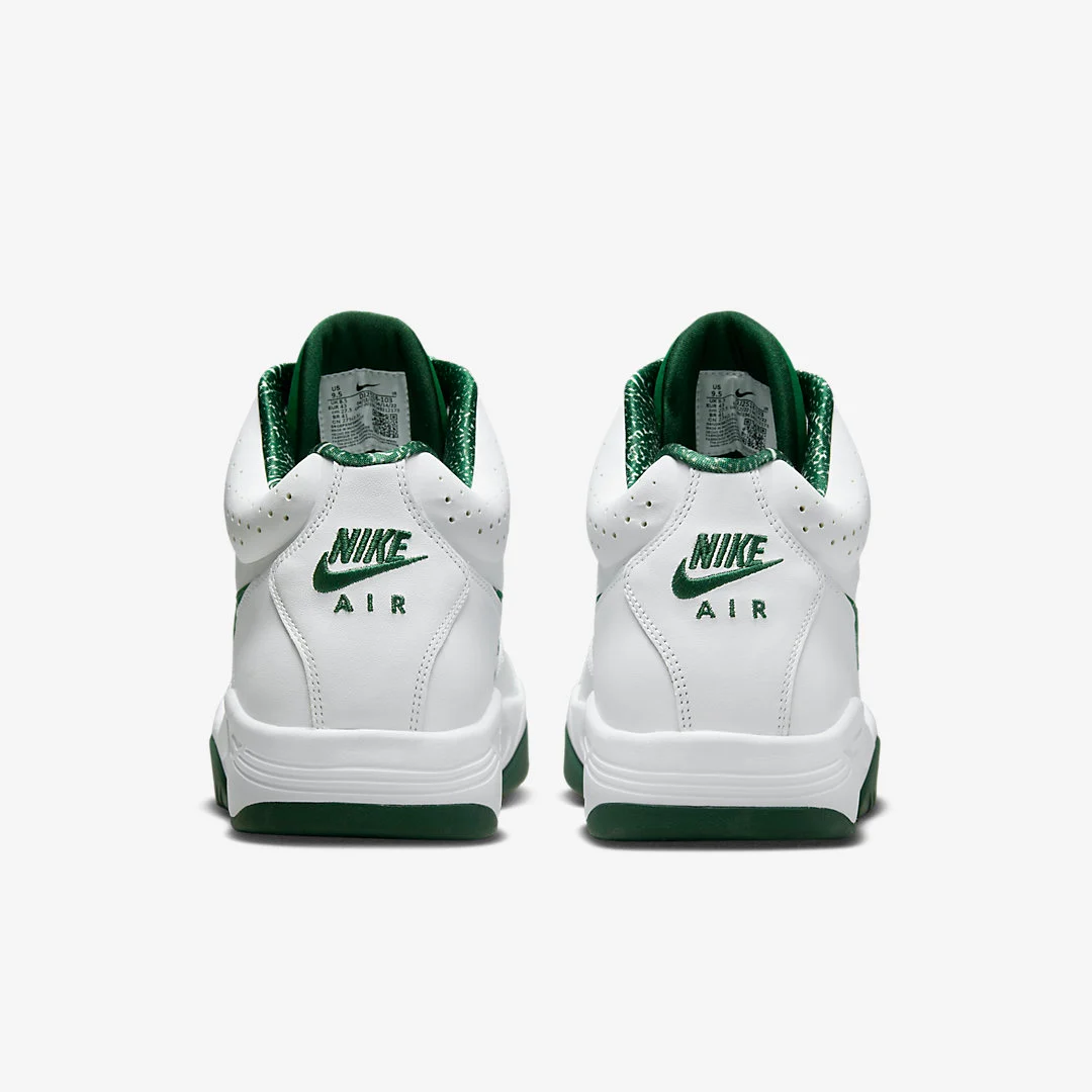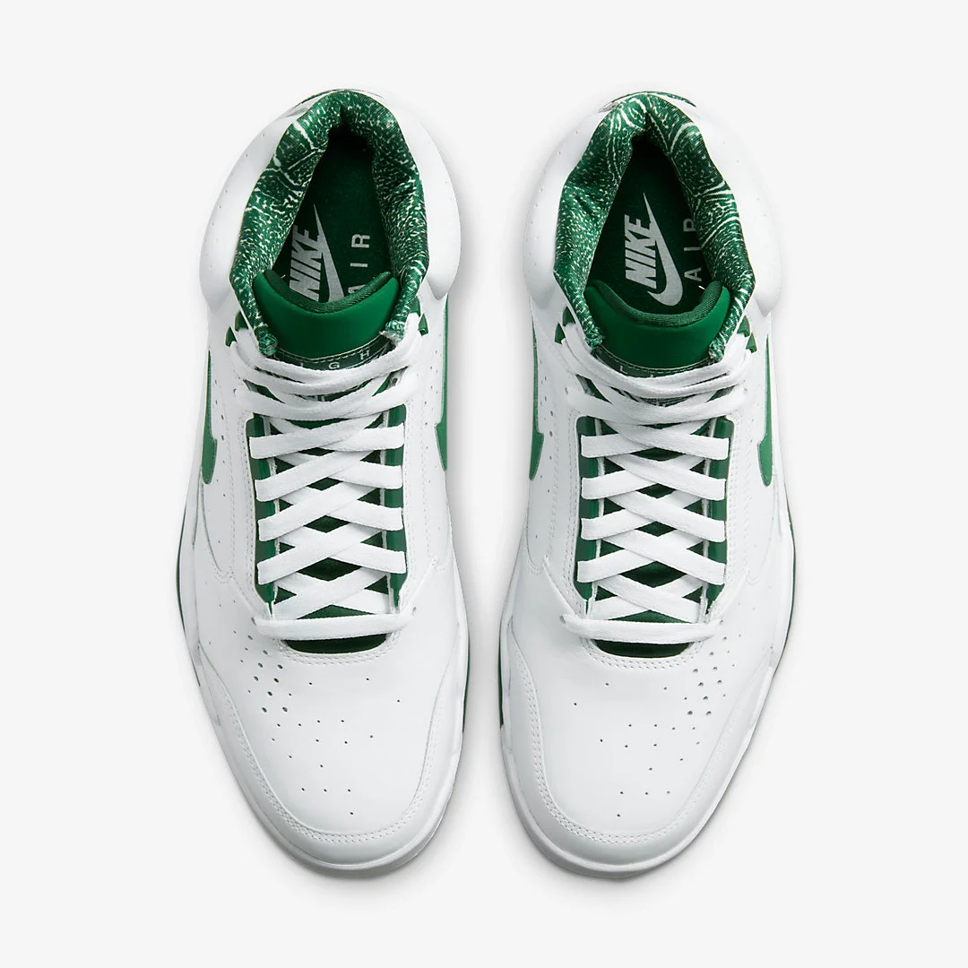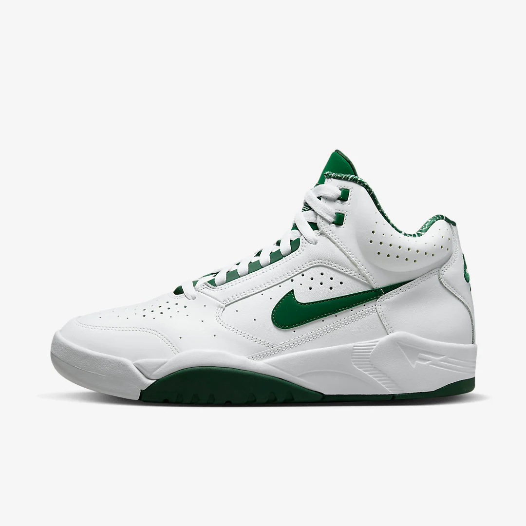 La Nike Air Flight Lite Mid se refait une beauté pour ses 30 ans. Le modèle qui a connu son petit succès au début des années 90 est de retour avec de nouveaux coloris dont ce classique blanc et vert foncé.