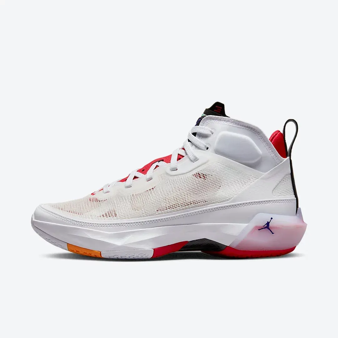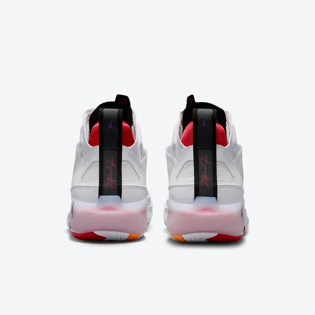 En attendant d'en savoir plus, on prend le temps de s’arrêter sur les images officielles de la Air Jordan 37 « Hare », parmi les premiers coloris à avoir été dévoilés, possédant une base blanche assortie de touches de rouge, vert et orange, sur les finitions et la semelle extérieure.