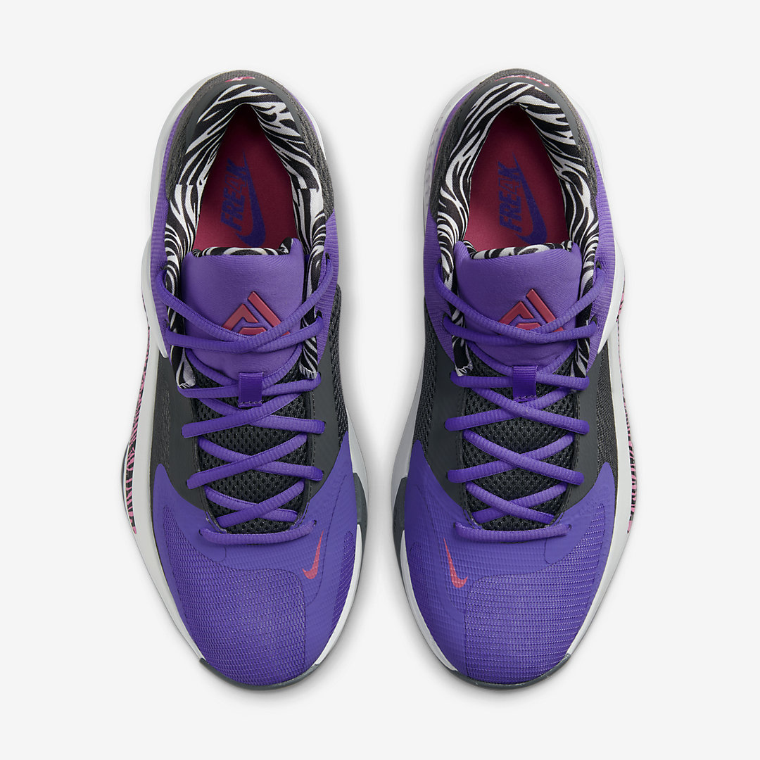 Dans la lignée du premier coloris dévoilé pour la Zoom Freak 4, Nike a présenté sa dernière mouture de la chaussure signature de Giannis Antetokounmpo, à dominante violette et rose.