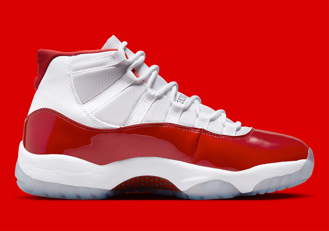 Après la « Cool Grey », place à la « Cherry » ! Après avoir fait l’objet de plusieurs fuites sur la toile, la prochaine Air Jordan 11 attendue en fin d’année 2022 a été officiellement présentée, avec du cuir verni rouge cerise pour habiller la base de la tige également en mesh blanc (contre du daim sur la version de 2021).