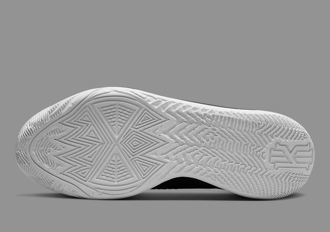 La semelle extérieure, les contours du « Swoosh » et logo du joueur ressortent pour leur part en blanc, tandis que les œillets offrent une touche de gris. L’intérieur d’une des deux virgules apparaît en marbré noir et blanc.