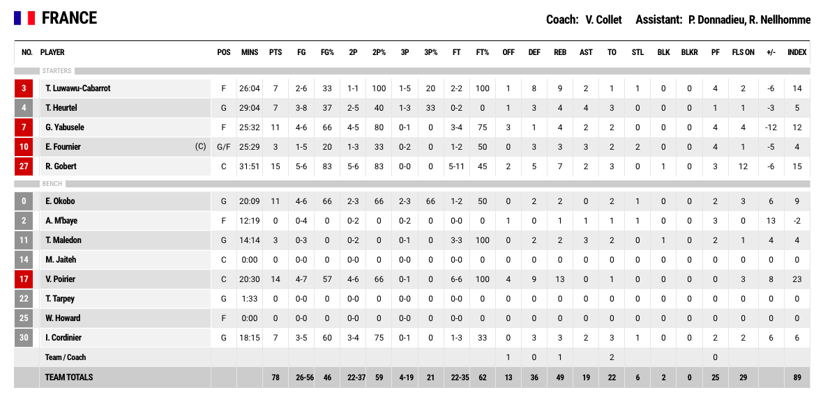 En prolongation, donc, les Français continuent de s’appuyer sur leurs intérieurs, Rudy Gobert et Guerschon Yabusele, qui ne cessent d’attirer les fautes.