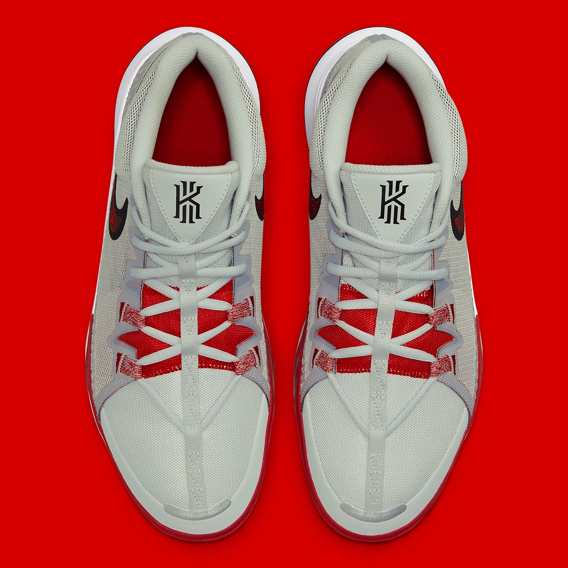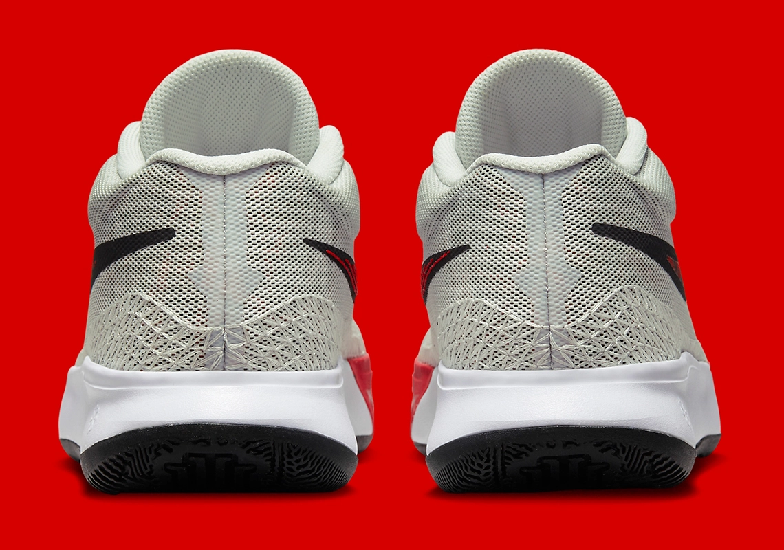 Les autres finitions sont en rouge et noir, comme le logo du joueur sur la languette en noir ou la semelle extérieure, en rouge et noir. Plus d’infois à venir sur la date de sortie et le prix de la Kyrie Flytrap 6.
