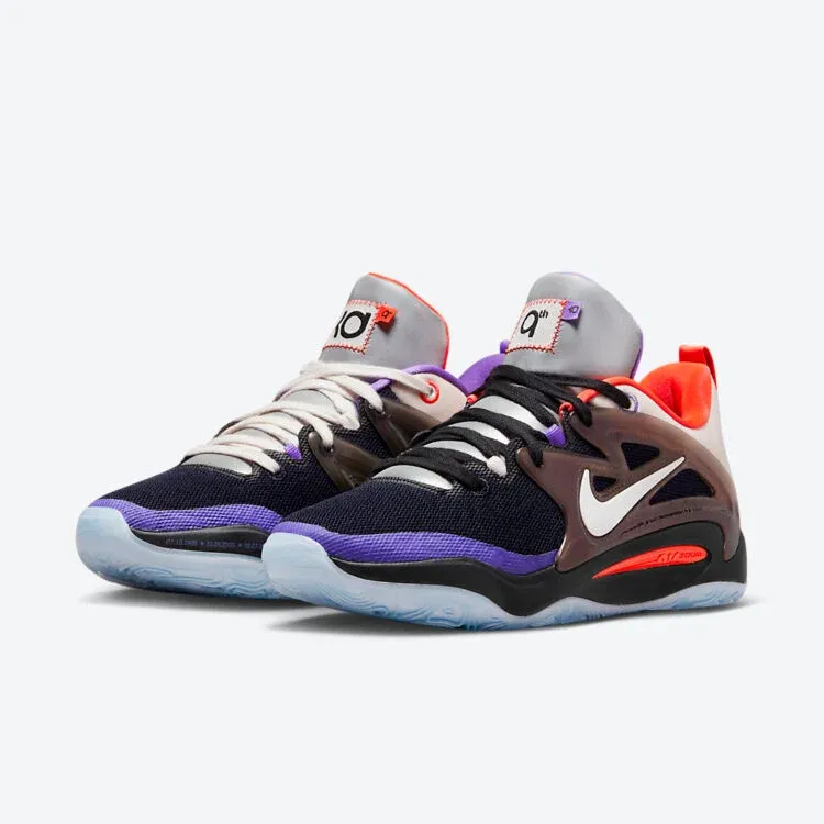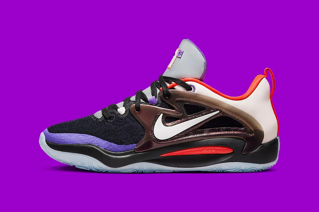 Erratum : initialement présentée comme la version « 9th Wonder » de la KD 15, la version à dominante de grise de la chaussure signature de Kevin Durant était en fait destinée à un autre producteur, Cardo, comme la languette de la chaussure droite le laissait deviner !