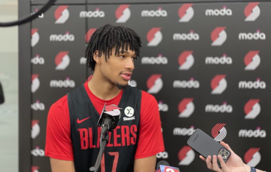 On savait simplement que le 7e choix de la Draft 2022, qui souffrait d’une légère déchirure du labrum de l’épaule gauche, contractée dès le premier match de Summer League de Portland, n’avait pas besoin de passer sur le billard.