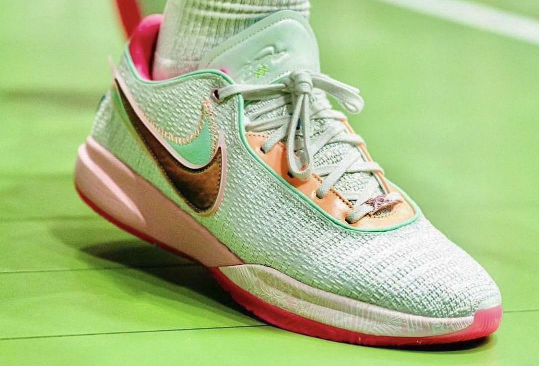 Le dunk tonitruant de Bronny James ou la performance remarquée de Bilal Coulibaly n’ont pas été les seuls événements de la rencontre entre une sélection des meilleurs lycéens américains et U18 français lundi soir au Palais des Sports Maurice-Thorez de Nanterre. Le fils de LeBron James a en effet été aperçu avec la prochaine chaussure signature de son père, la LeBron 20, cette fois dotée d’un nouveau coloris.