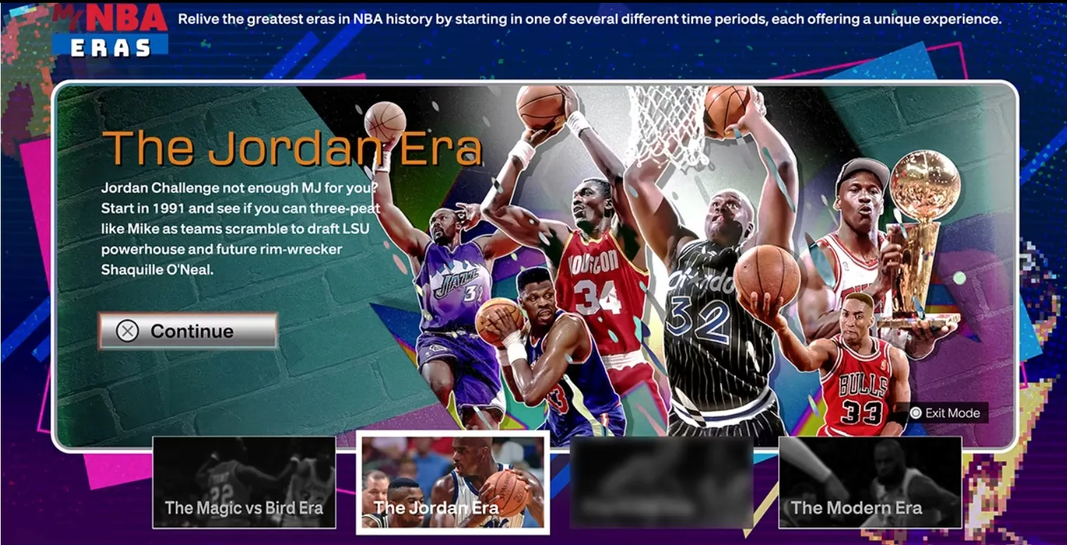 Il permet de remonter le temps et d'attaquer une saison à partir de trois dates charnières : 1983, baptisée la « Magic vs Bird Era », 1991 pour la « Michael Jordan Era » et 2002 pour la « Kobe Era ».