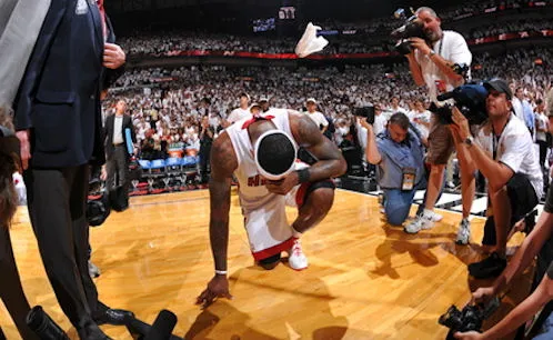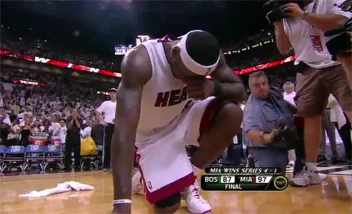 Alors que Paul Pierce et les siens multipliaient les pertes de balle inexplicables, l’ailier inscrivit deux 3 points consécutifs avant d’expulser toute sa rage, emmagasinée depuis des années d’éliminations précoces, sur un dunk après interception. Le Heat, qui se qualifie pour la Finale de la Conférence Est, pouvait légitimement exulter. LeBron, agenouillé dans un coin du terrain, semblait lui exténué par cette lutte, à la fois incroyablement exposée et si intime.
