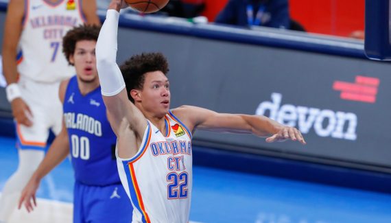 | 2020-21 | OKC | 61 | 23 | 48.3 | 29.4 | 74.4 | 1.5 | 4.1 | 5.6 | 1.8 | 2.7 | 0.9 | 1.9 | 0.6 | 8.7 |