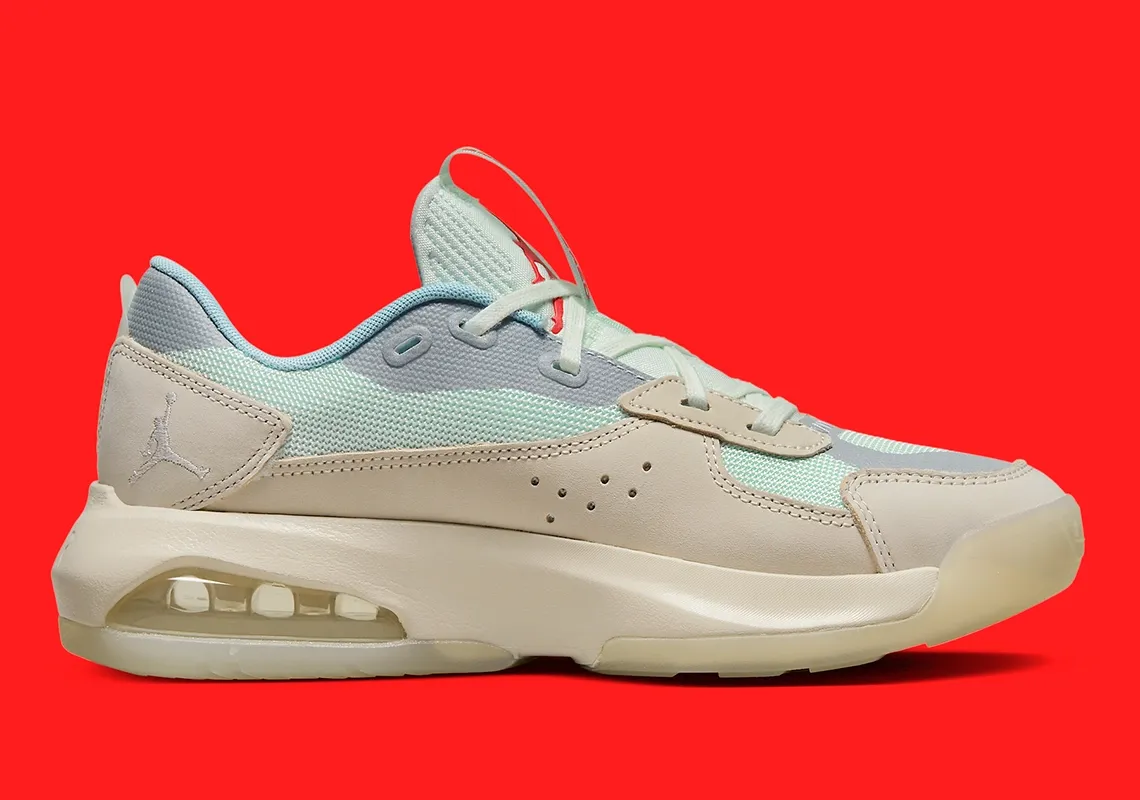 Présentée en grande pompe en avril dernier avec cinq coloris différents, la Jordan Air 200E est de retour avec un nouveau coloris pour boucler le mois d’août. Celui-ci s’affiche en beige au niveau de la semelle intermédiaire et de la base de la tige en cuir, complété par du mesh vert pâle et gris.