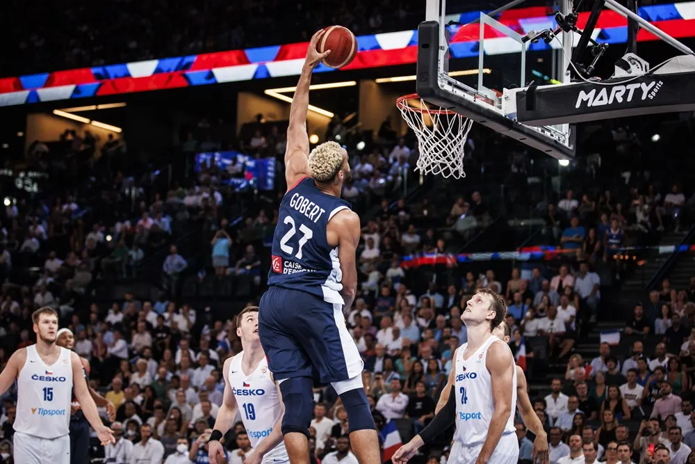 Rudy Gobert. En attendant de découvrir sa nouvelle écurie à la rentrée, dans le Minnesota, Rudy Gobert peut compter sur l'Equipe de France pour conserver ses (bonnes) habitudes. Le triple défenseur de l'année en NBA tient un rôle différent sous la tunique nationale, avec plus de ballons en attaque, que ce soit pour créer pour lui ou créer pour les autres. Mais il reste, encore et toujours, le totem défensif des Bleus. De plus en plus à l'aise dans ce costume de leader, des deux côtés du terrain, Gobert espère bien pouvoir décrocher sa première médaille d'or, après en avoir glané trois en bronze et une en argent (aux derniers JO).