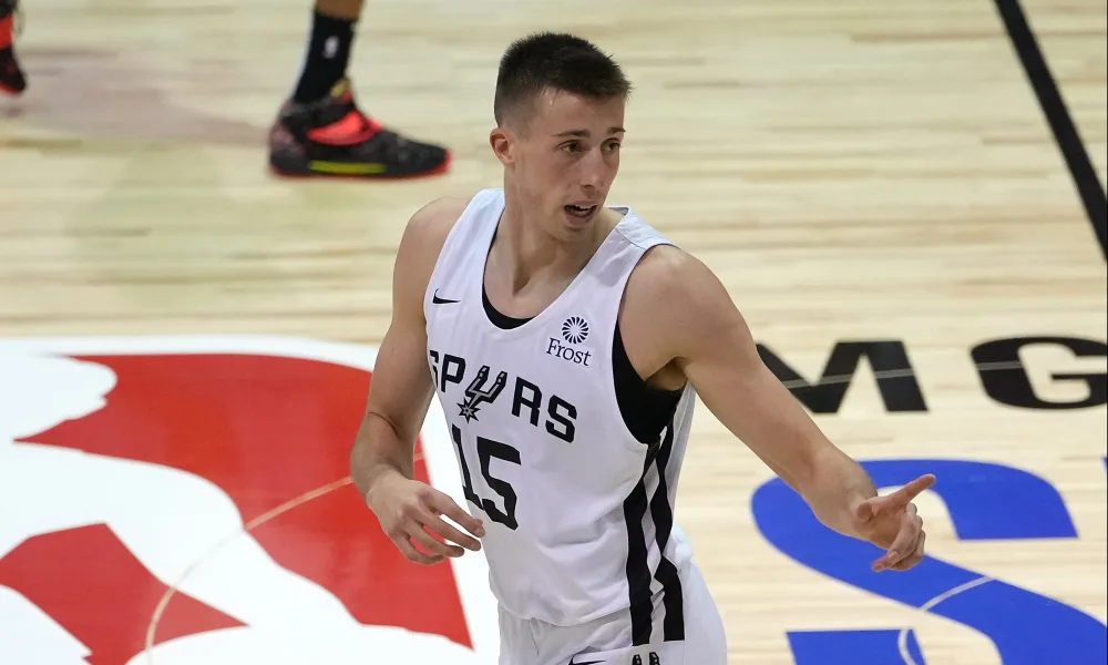 Il s’agit de Joe Wieskamp, drafté en 41e position de la Draft 2021 et converti en « two-way contrat » en début d’exercice 2021-2022, ce jusqu’en mars, lorsque son contrat a été converti pour qu’il puisse intégrer l’équipe première de façon permanente. Le voilà donc de retour à San Antonio, après un court passage par la case « free agent ».