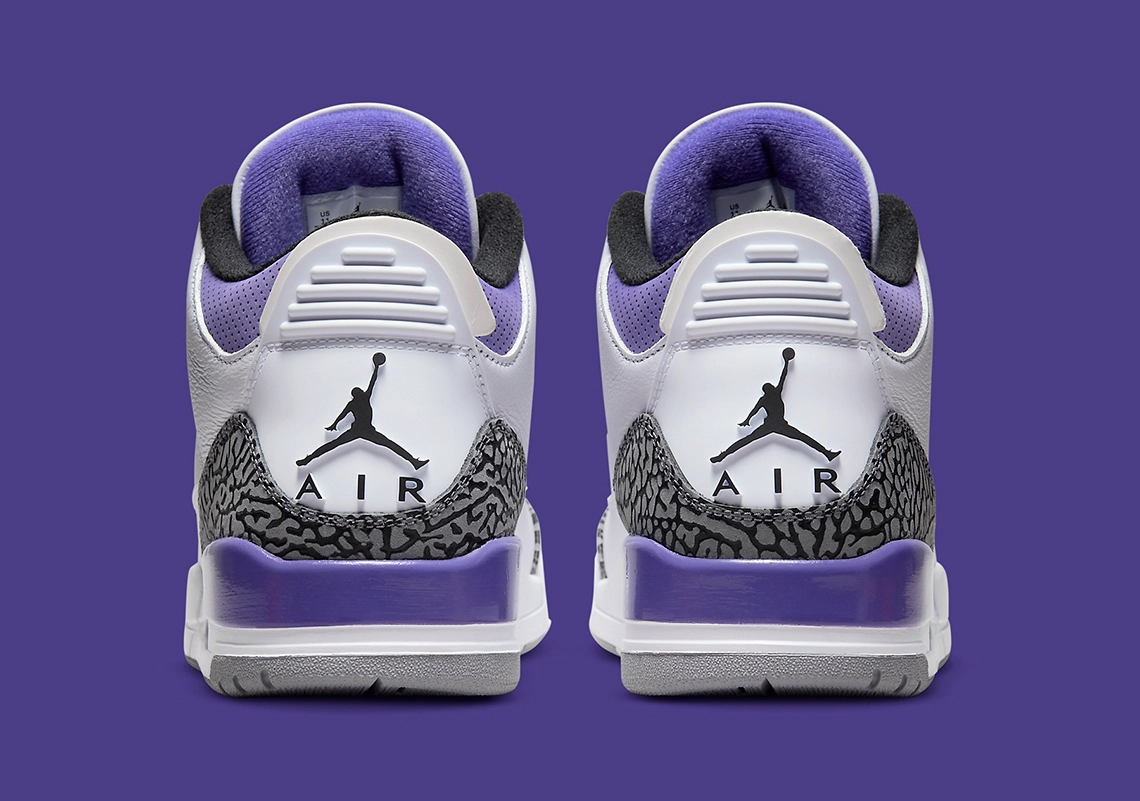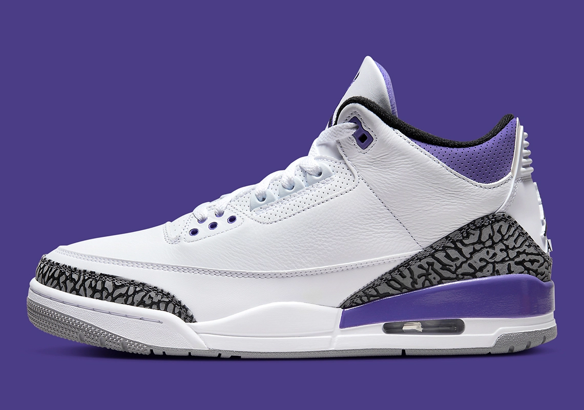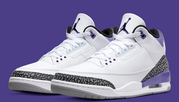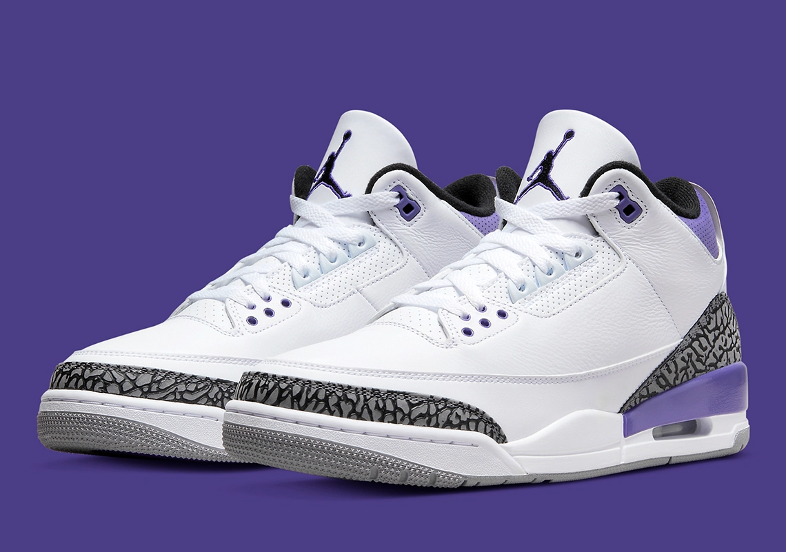La Air Jordan 3 a été souvent mise en avant cette année avec une bonne demi-douzaine de coloris déjà dévoilés. La version « Dark Iris » va rejoindre la collection 2022 dès aujourd’hui. La marque au « Jumpman » a cette fois opté pour un coloris classique avec une tige en cuir blanc, marquée à sa base par des bandes classiques en imprimé éléphant.