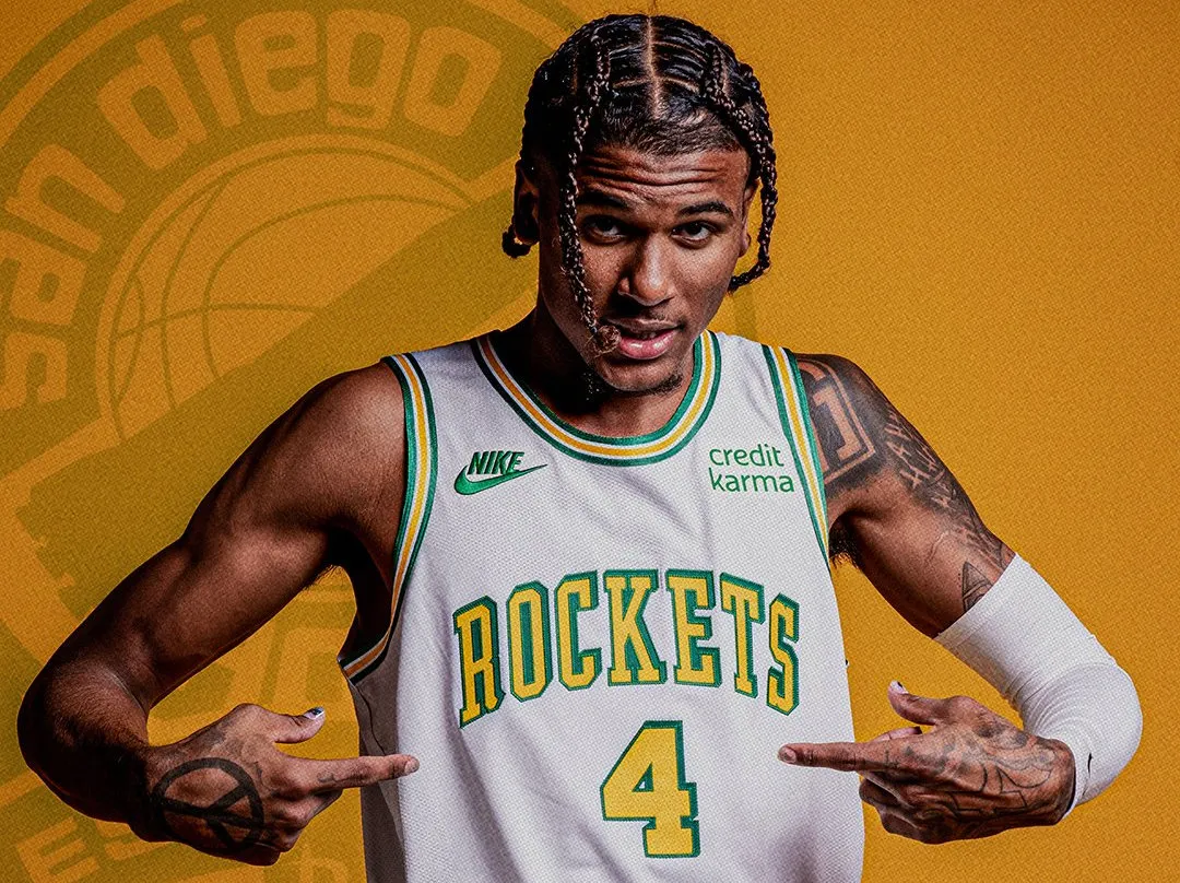 Mais il ne s'agit pas d'un hommage à l'ancienne franchise de Seattle, mais à la création des Rockets il y a 55 ans. C'était en 1967 du côté de San Diego. On était loin du Texas et de la NASA, et les Rockets avaient des couleurs plus californiennes.