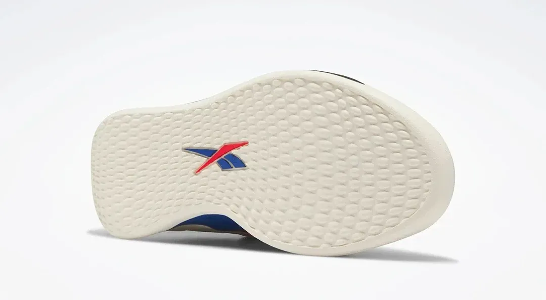 L’amorti « Float » de Reebok est présent dans la semelle intermédiaire et l’ensemble repose sur une semelle extérieure blanche. Niveau couleurs, on retrouve donc du blanc cassé, des tiges de rouge et de bleu, ainsi que quelques notes de noir sur la semelle et au niveau du talon.