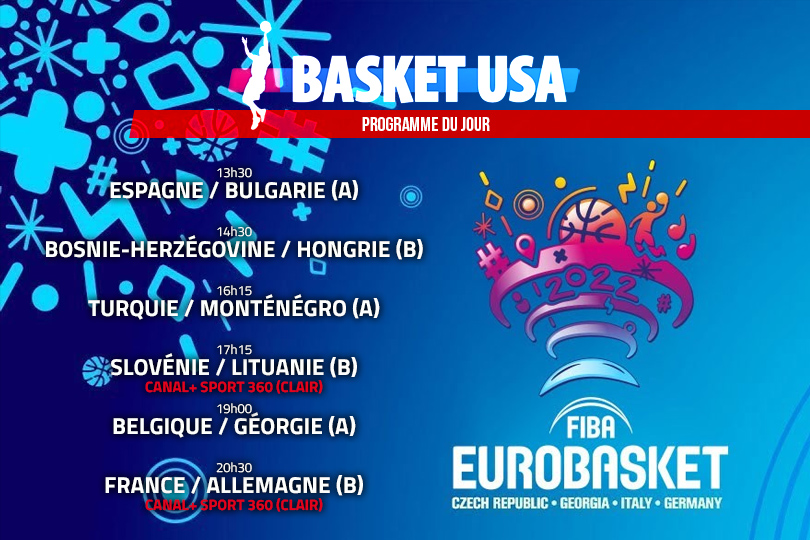 Et ça commence ce 1er septembre avec les entrées en lice du groupe A (celui de la France) et du groupe B, avec deux matchs diffusés en clair sur Canal+ Sport 360 : Slovénie – Lituanie à 17h15 et France – Allemagne à 20h30.