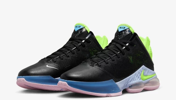 La LeBron 19 Low s’est distinguée au cours de l’été par une flopée de coloris plutôt originaux. Ce nouveau mariage baptisé « Black Volt » reste dans cette tendance.