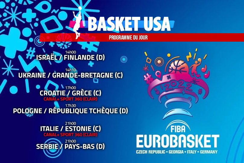 Premier (et seul vrai) choc du jour à 17h00, sur Canal+ Sport 360 entre la Croatie de Dario Saric et la Grèce de Giannis Antetokounmpo. On pourra aussi y suivre le match entre l’Italie et l’Estonie, à 21h00.
