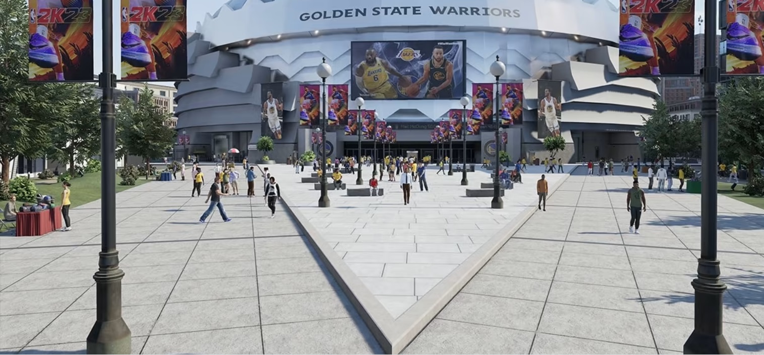 Mais le lieu phare de cette édition 2023 pourrait bien être « The Arena », une salle NBA grandeur nature au sein de la ville dans laquelle vous vous rendrez pour disputer vos matchs NBA dans « Ma Carrière ». Vous partirez alors à la découverte des coulisses de votre enceinte (celle des Warriors sur les photos, des Bulls dans le « trailer »), via l’entrée réservée aux joueurs, l’accès média, le vestiaire, tout en ayant la possibilité d’accomplir diverses quêtes.