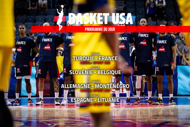À 14h45, la Slovénie de Luka Doncic fait face à la Belgique, et c’est le seul match de la journée qui ne sera pas diffusé sur les antennes de Canal+ car, derrière, on pourra y suivre les rencontres entre Allemagne et Monténégro à 18h00, puis le choc de la journée entre l’Espagne et la Lituanie, à 20h45.