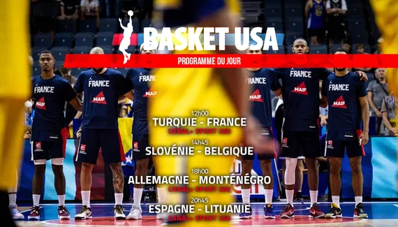 À 14h45, la Slovénie de Luka Doncic fait face à la Belgique, et c'est le seul match de la journée qui ne sera pas diffusé sur les antennes de Canal+ car, derrière, on pourra y suivre les rencontres entre Allemagne et Monténégro à 18h00, puis le choc de la journée entre l'Espagne et la Lituanie, à 20h45.