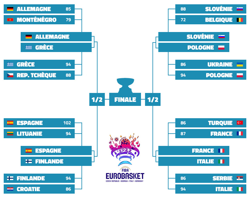 On connait désormais le Top 8 européen, avec la Grèce, la Finlande, la Pologne et l’Italie qui ont rejoint l’Allemagne, l’Espagne, la Slovénie et la France en quarts de finale, à Berlin.