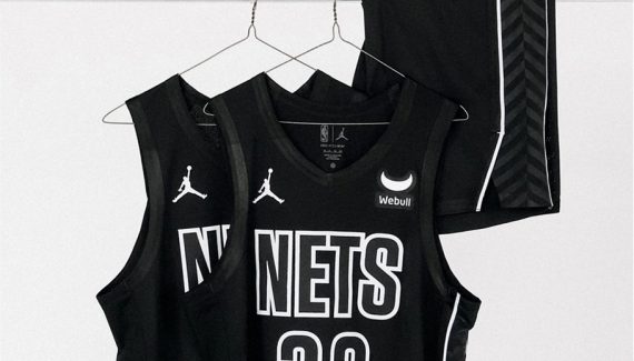 Avec le « Jumpman » de Jordan Brand, le sponsor « Webull » et les bandes latérales, seuls les contours du « NETS » au niveau du torse et du numéro de chaque joueur figurent en blanc, sur un fond entièrement noir, assorti de quelques motifs en noir sur noir.