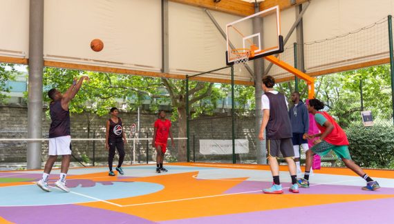 L’entreprise de 2K Foundations, derrière l’éditeur mondial de jeu vidéo « 2k », va représenter un allié de choix dans cette démarche puisque la fondation vient de rénover les terrains de basket du TEP Chaumont, situés porte de Chaumont, dans le XIXe arrondissement de Paris. Il s’agit d’un terrain de 5-contre-5 et de 3-contre-3 qui ont été redécorés par l’artiste française Aurélia Durand. Le moins que l’on puisse dire, c’est que le résultat est… coloré !